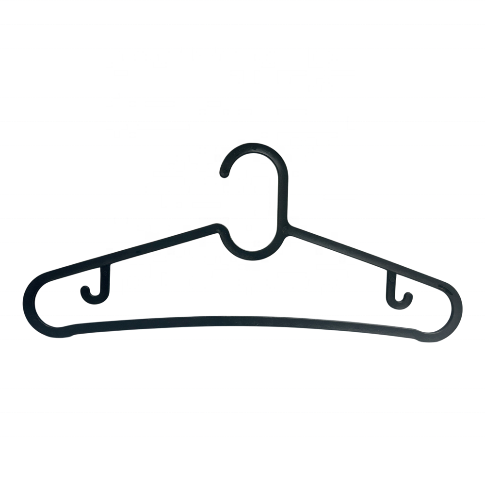 This black plastic hanger is designed with the concept of "invisible storage assistant". With a length of 40cm and a height of 18.5cm, its size is just right. It can securely hold heavy items such as coats and suits, while not occupying too much space in the closet.