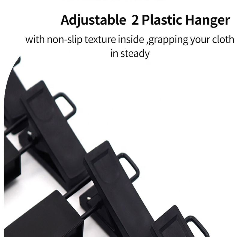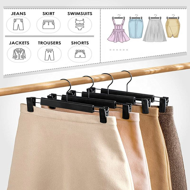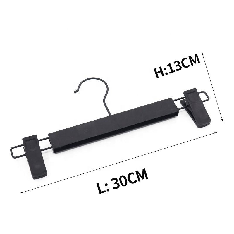 This black pants hanger is 30CM long and 13CM high. It is equipped with a metal hook, which is stable and durable. The clip - on designs at both ends can firmly hold pants and other clothes to prevent them from slipping. Simple and practical, it is suitable for home wardrobes or clothing stores, helping to neatly store pants and save space.