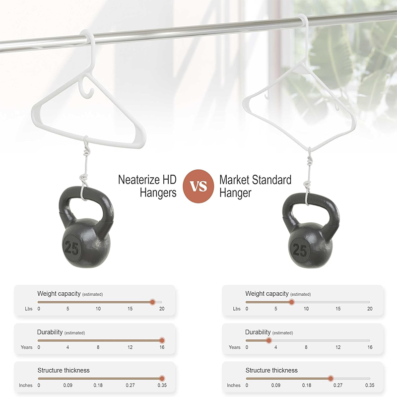 Premium Durability: Made of heavy-duty unbreakable plastic, eco-friendly & stain-free. Extra thickness + reinforced bottom bar for higher load capacity than standard hangers.
