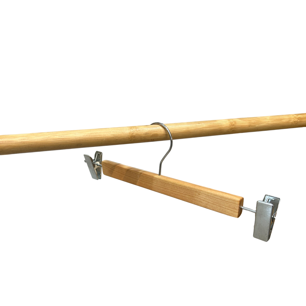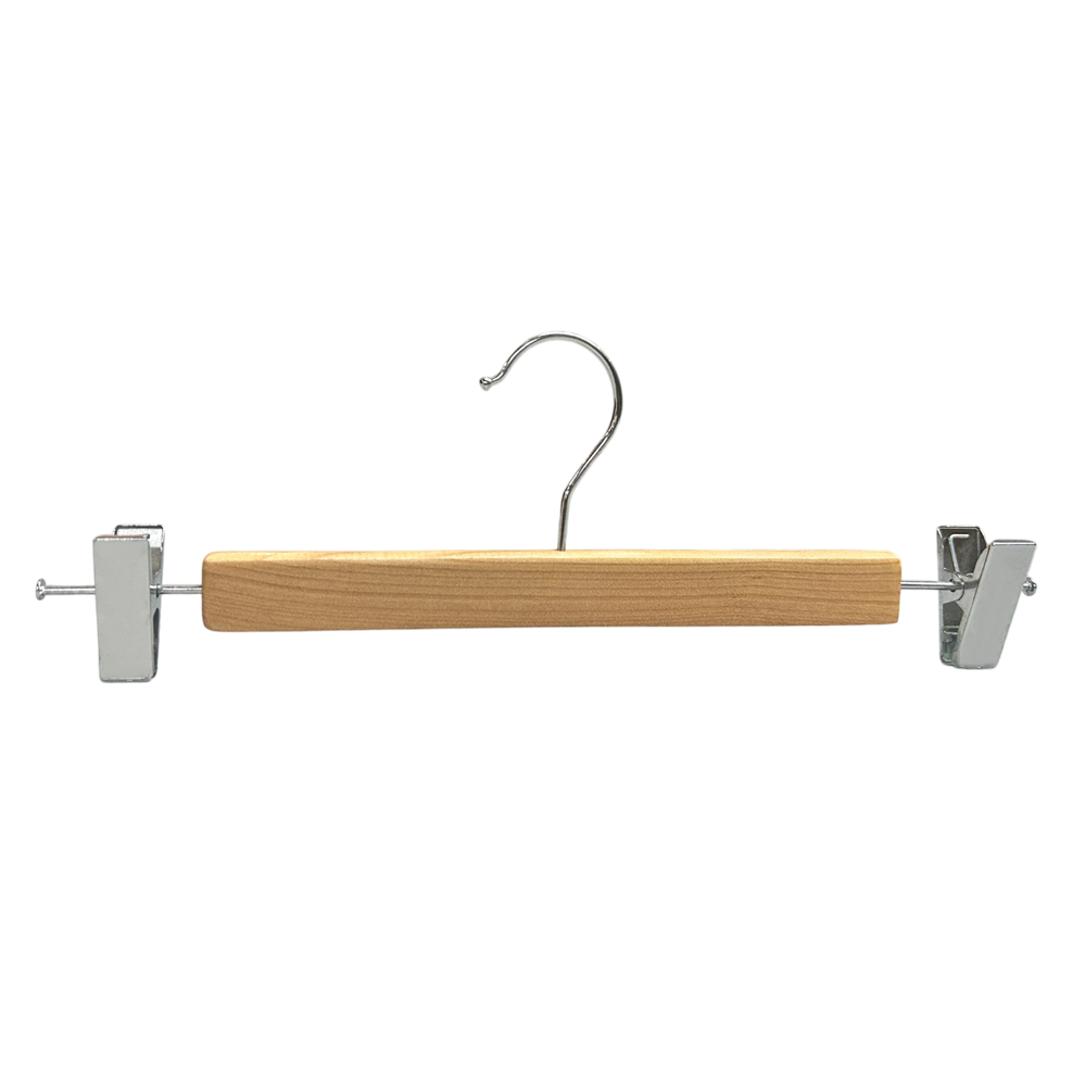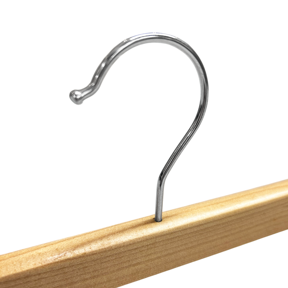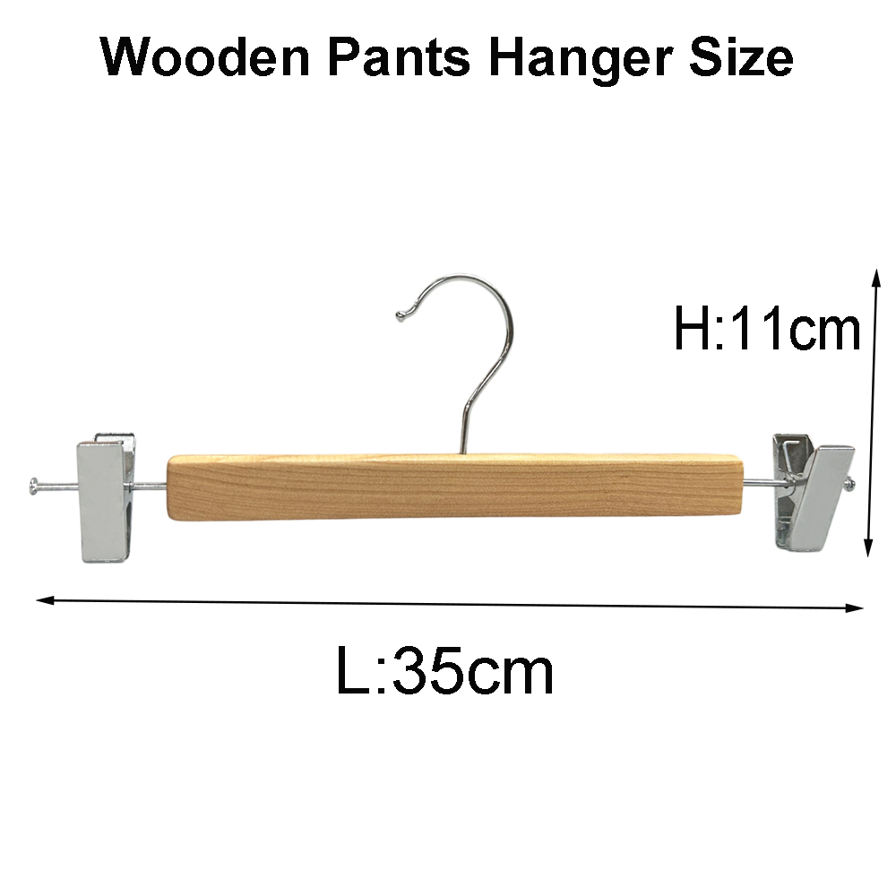 Natural Wood :Crafted of smooth lacquered wood and chromed metal, these trousers hangers are strong, robust and will last for years to come.
