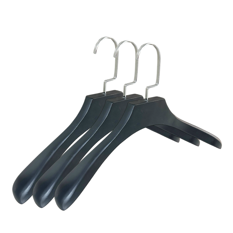 Bend metal Hook:Each wooden hanger has a chromed bend metal hook that fits most wardrobe rods.
