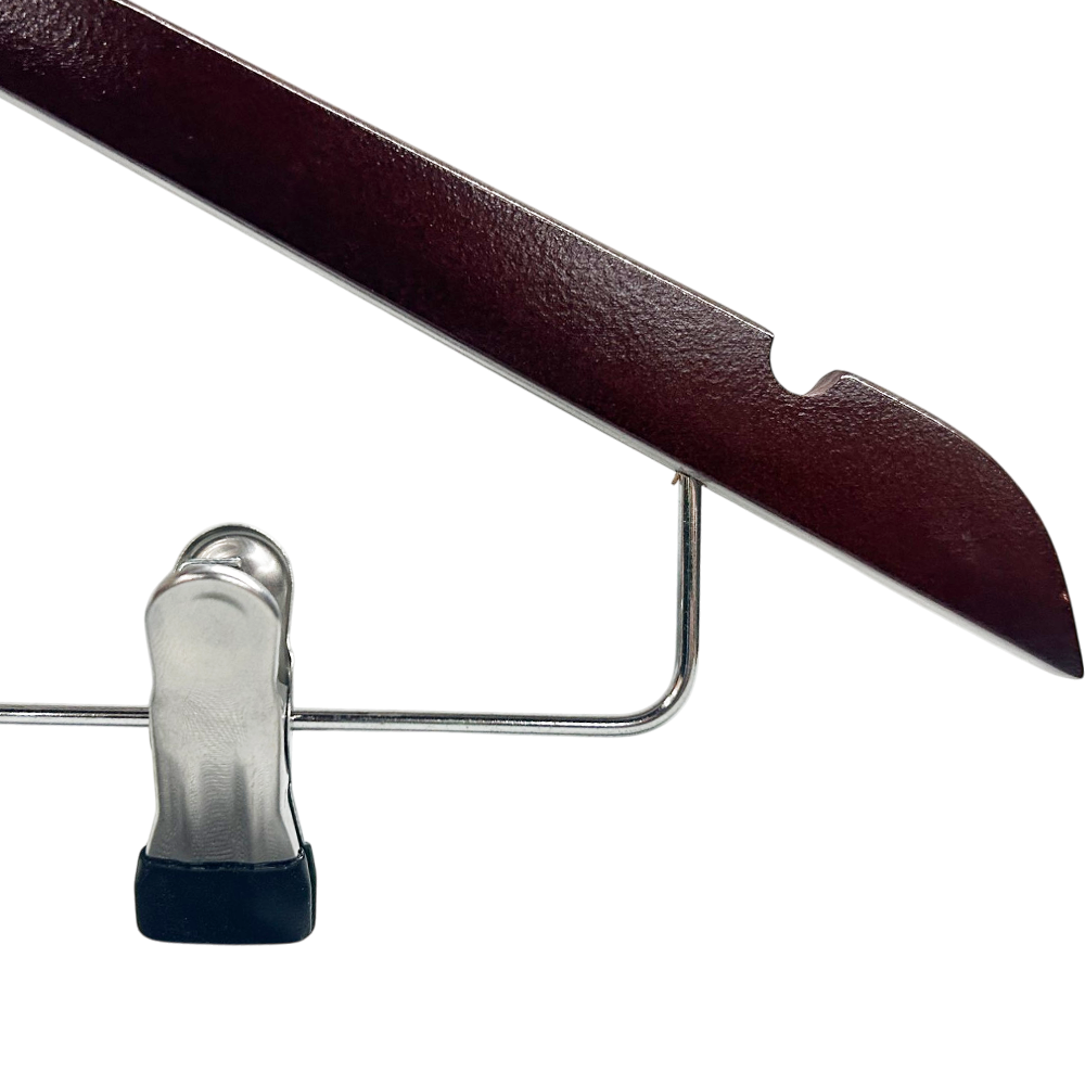 Natural Wood :Crafted of smooth lacquered wood and chromed metal, these trousers hangers are strong, robust and will last for years to come.