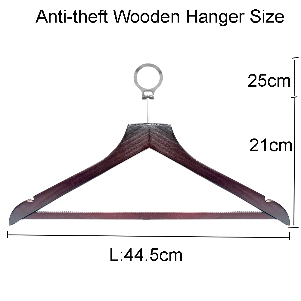 Anti Theft Ring : The wooden hanger with anti-theft ring design means the hangers will not be taken home by customers and guests.