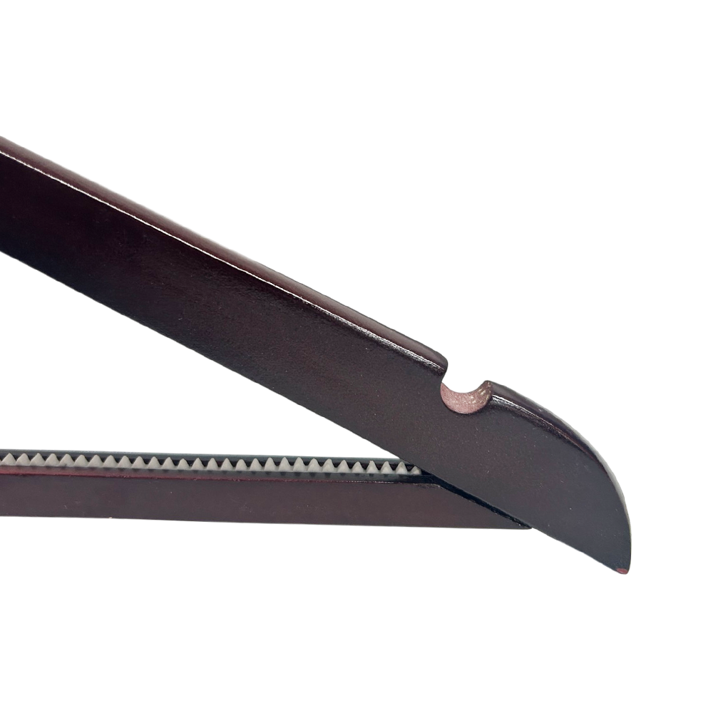 Natural Wood :Crafted of smooth lacquered wood and chromed metal, these trousers hangers are strong, robust and will last for years to come.