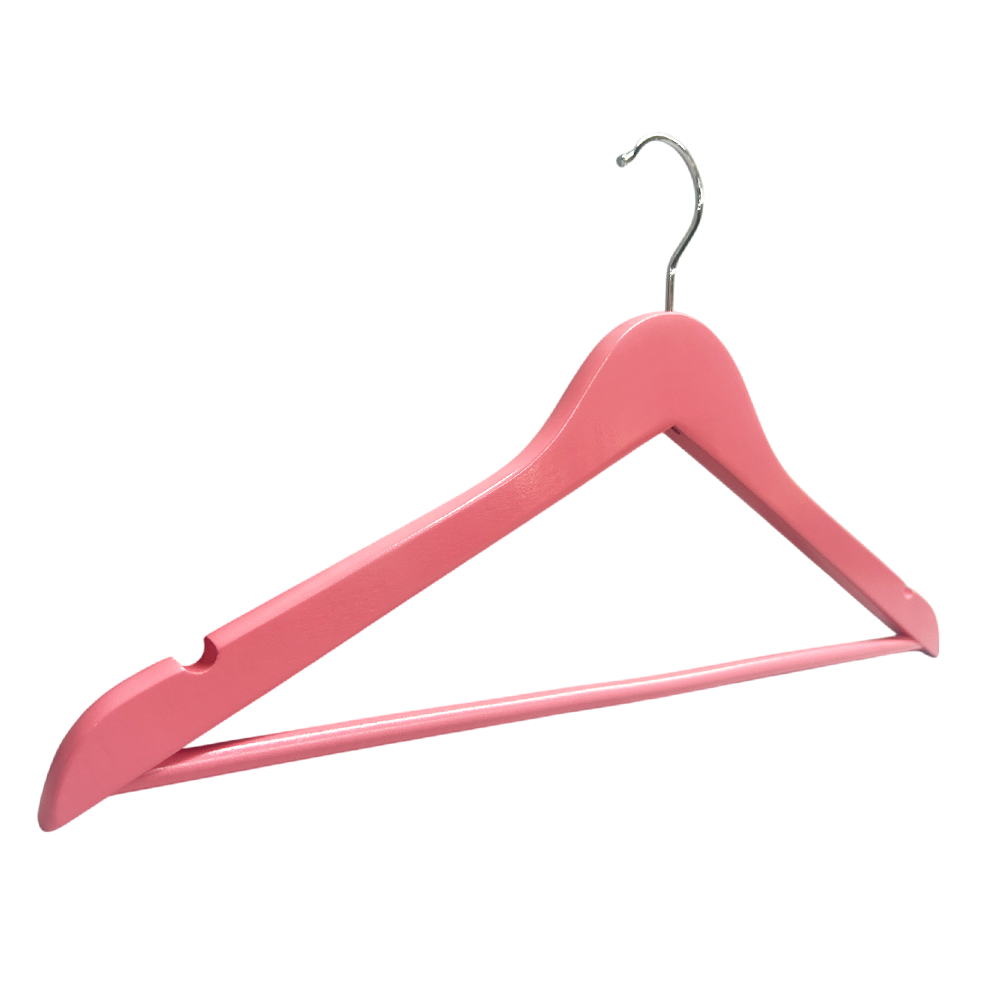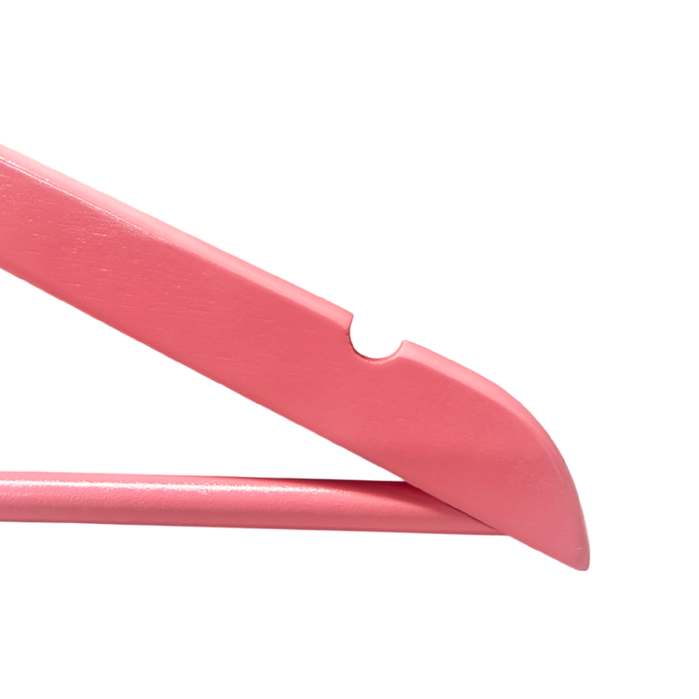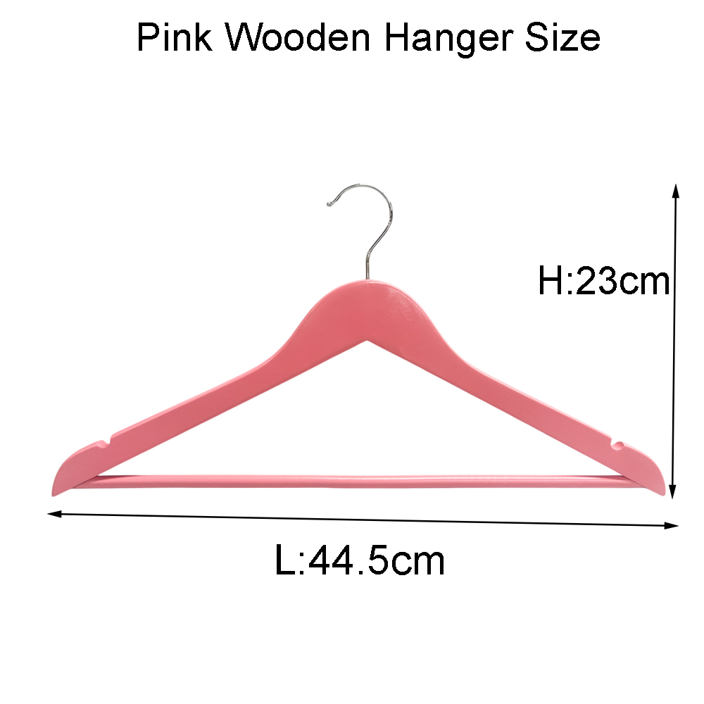 Polished Smooth Surface : With double hand-sanding craft without burr, the surface of wooden clothes hangers with pink color,becomes smooth and protect your clothes from snaggin.
