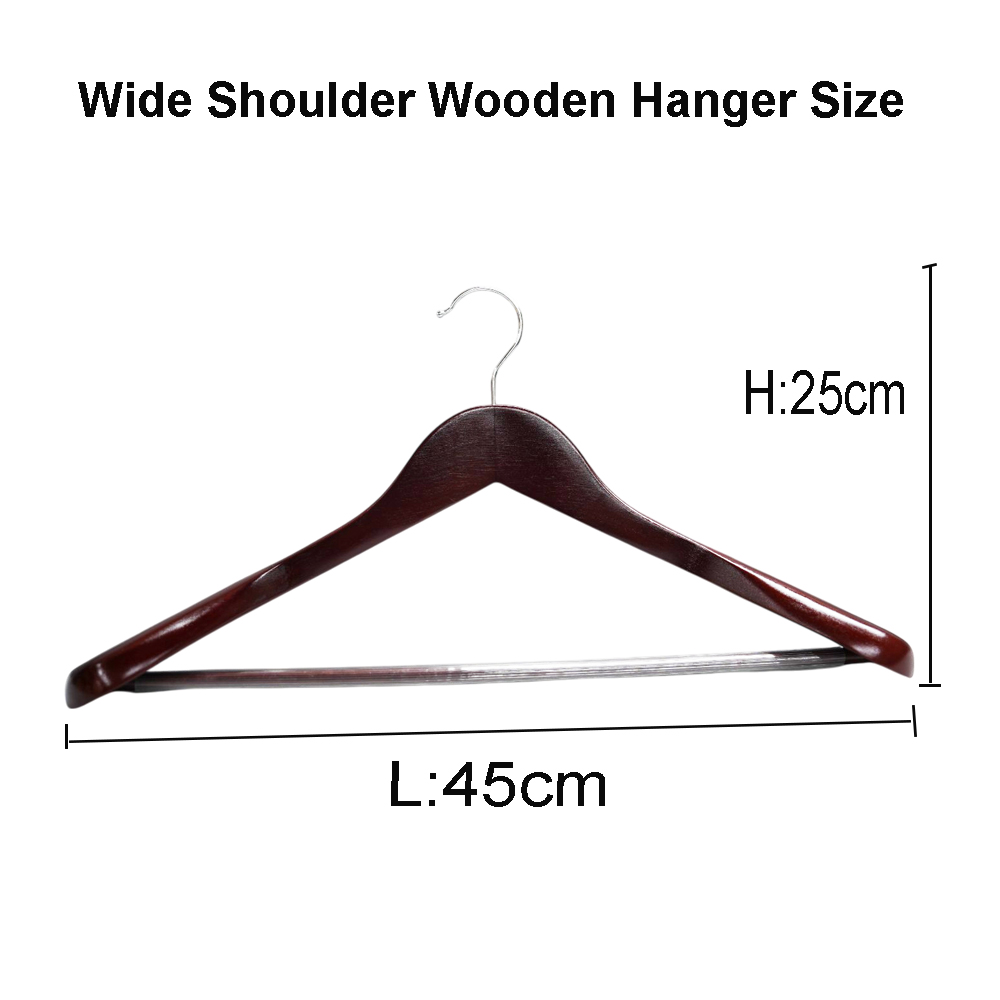 Extra Wide Shoulder Design : the wide shoulder design of the coat hangers provides ample support to your suits, coats and other kinds of clothes.