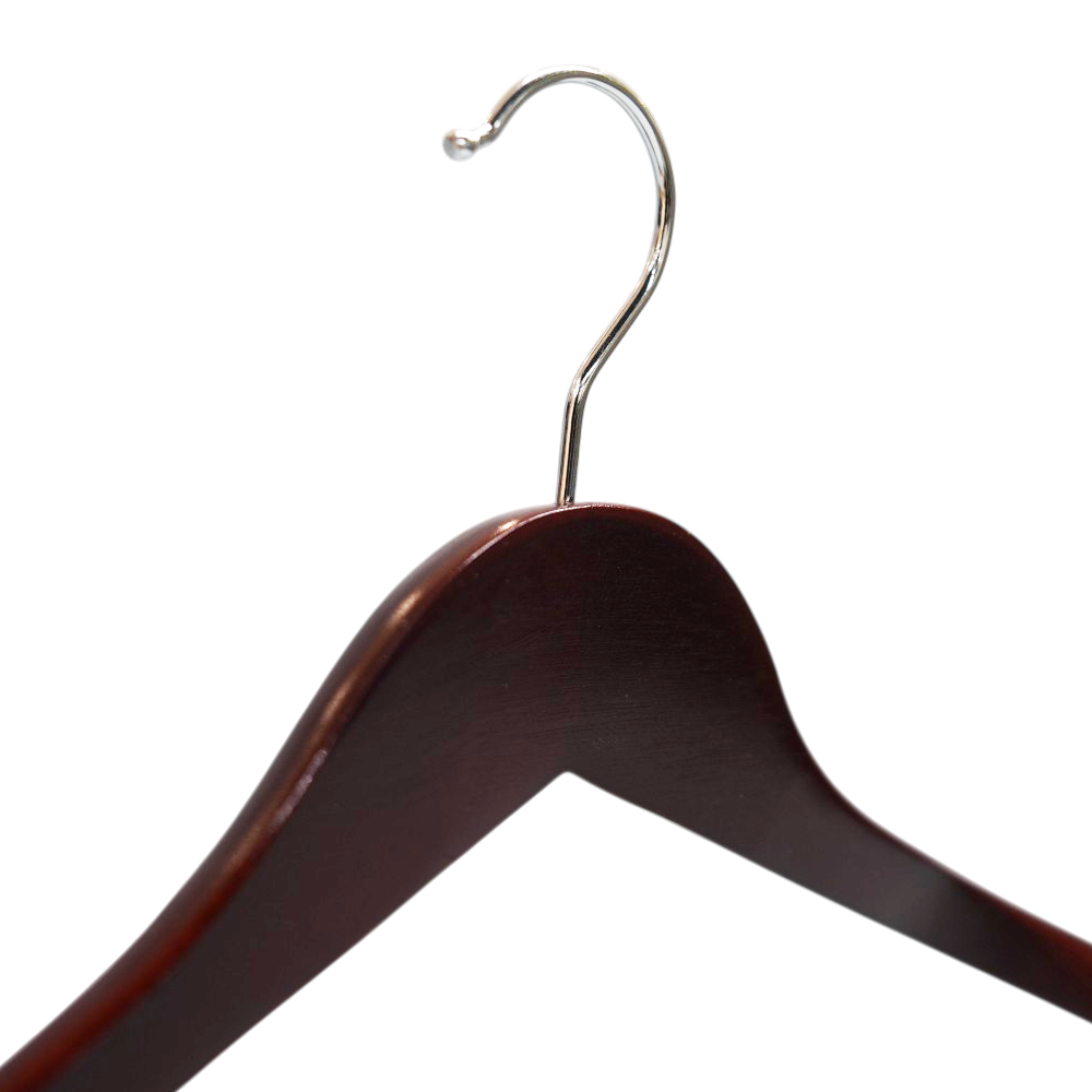 360 Swivel Hook: each wooden hanger has a chromed metal hook that can bear heavy duty clothes .