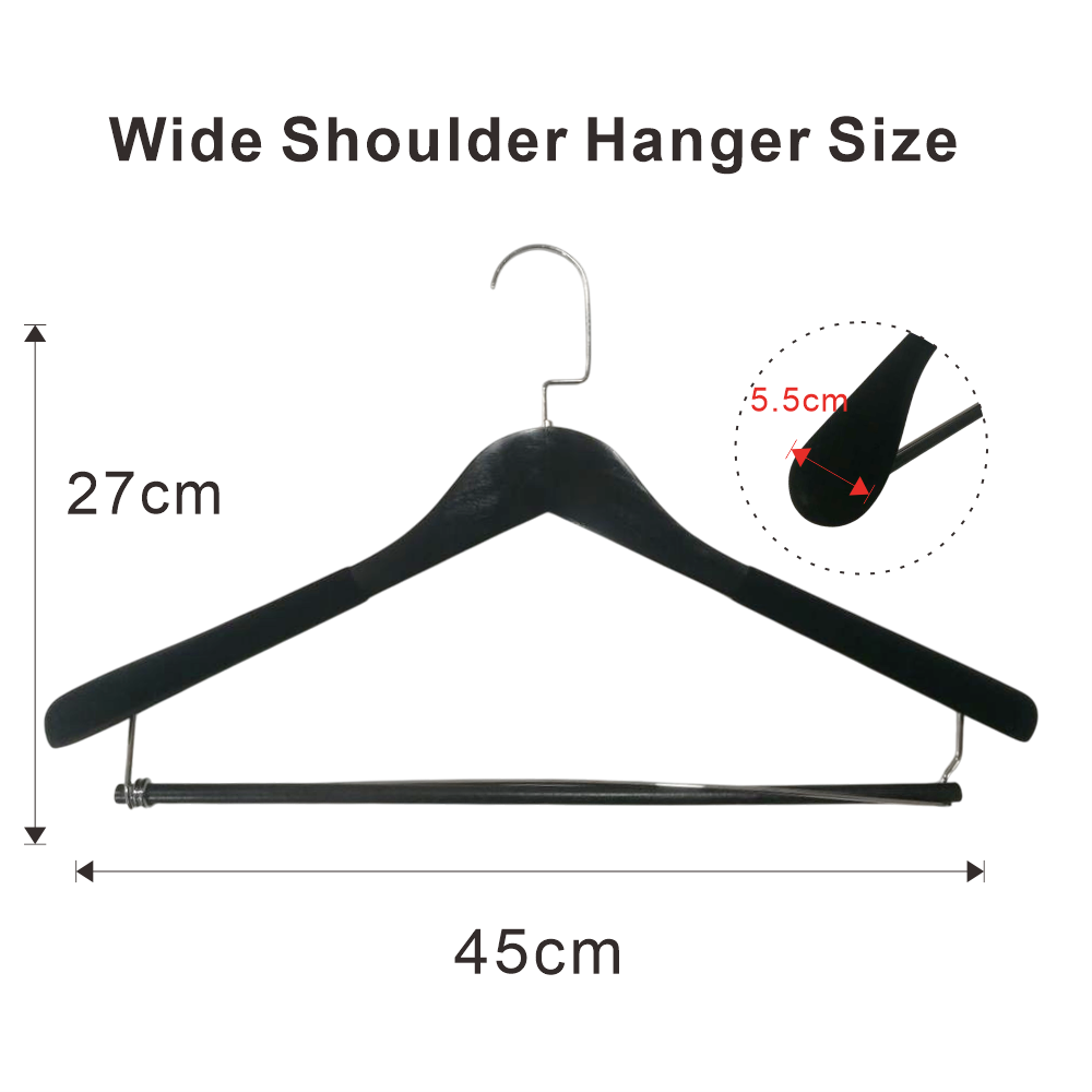 Extra Wide Shoulder Design : the velvet wide shoulder design of the coat hangers provides ample support to your suits, coats and other kinds of clothes.
