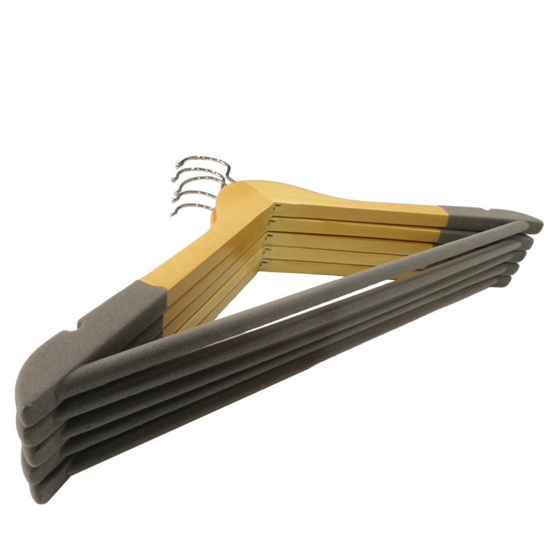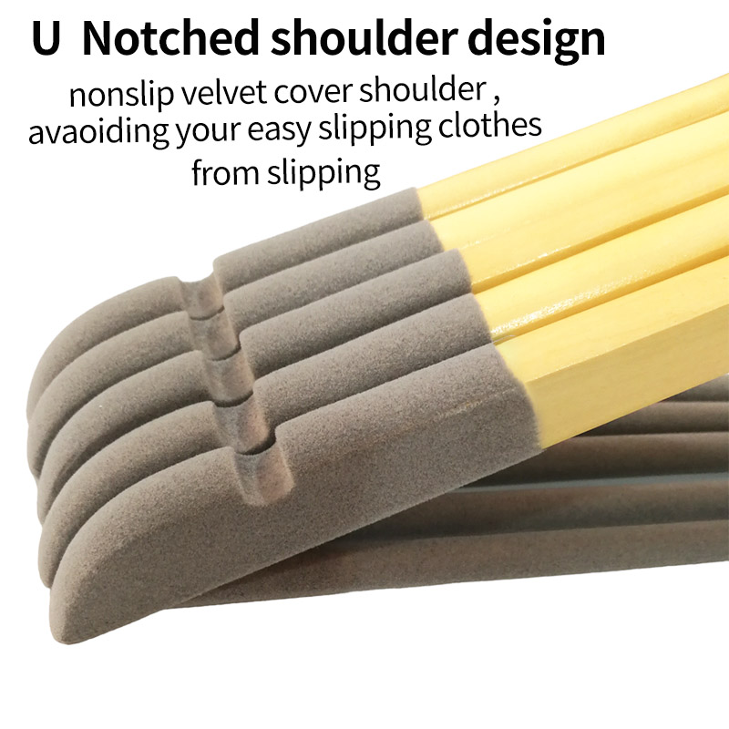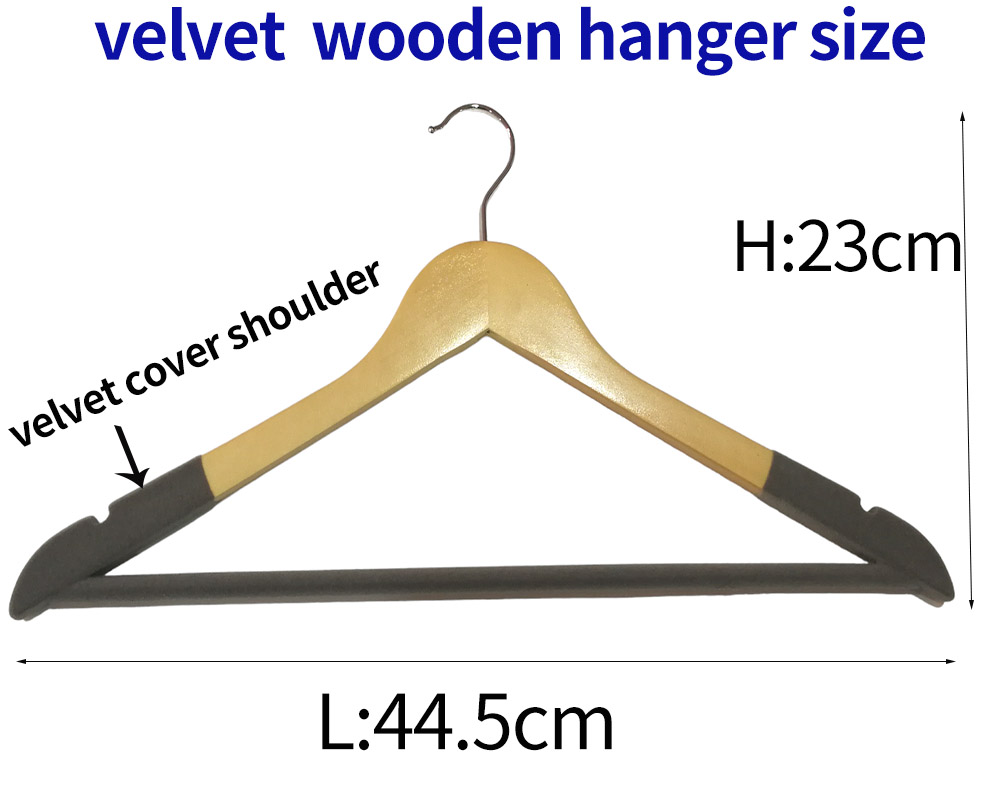 Non-slip Velvet Wood shoulder : both side shoulders of wooden coat hangers cover with non-slip velvet , aoiding your clothes from slipping .