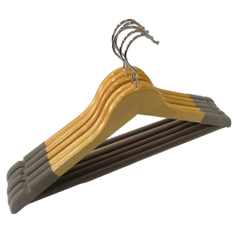 Non-slip Velvet Wood shoulder : both side shoulders of wooden coat hangers cover with non-slip velvet , aoiding your clothes from slipping .