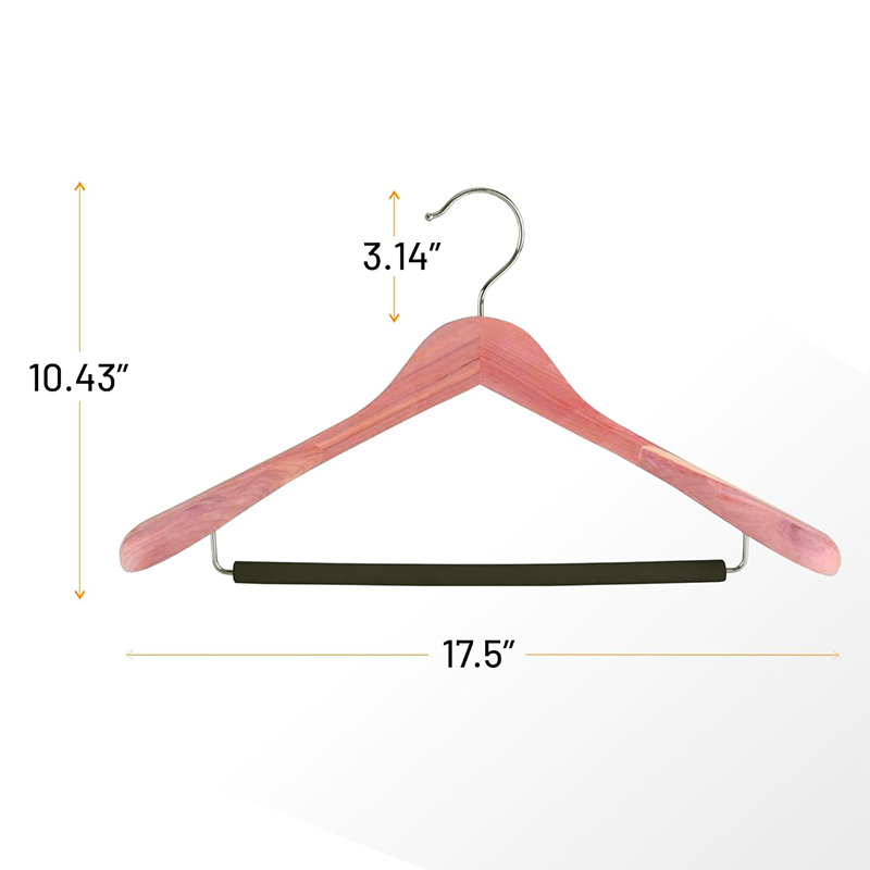 Eco-Natural & Fragrant Cedar: 5-pack hangers crafted from 100% natural red cedar wood (no paint), emitting long-lasting aromatic scent to freshen closets. Size: 17.5"L x 10.63"H, extra wide shoulders (2.3").