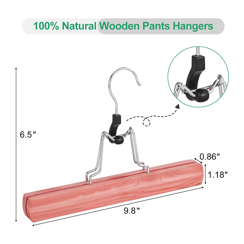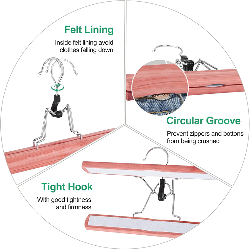 Cedar Non-Slip Design:Two wooden cedar bars paired with non-slip felt liners grip clothes tightly, ensuring they never slip off. The wide contact surface also holds garments gently yet securely.