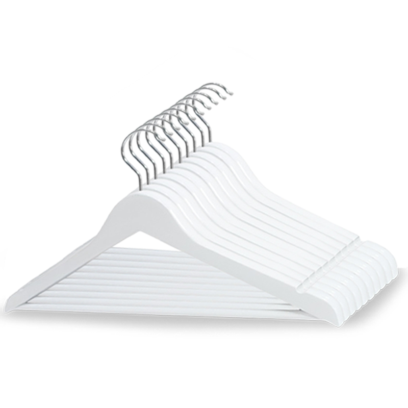 Polished Smooth Surface : With double hand-sanding craft without burr, the surface of wooden clothes hangers with white color ,becomes smooth and protect your clothes from snaggin