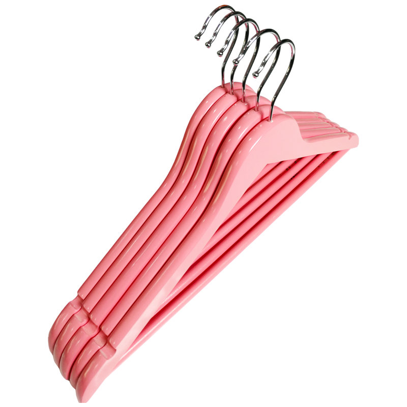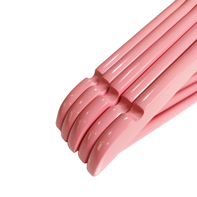 Polished Smooth Surface : With double hand-sanding craft without burr, the surface of wooden clothes hangers with pink color,becomes smooth and protect your clothes from snaggin
