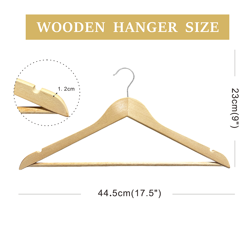 Polished Smooth Surface : With double hand-sanding craft without burr, the surface of wooden clothes hangers becomes smooth and protect your clothes from snaggin