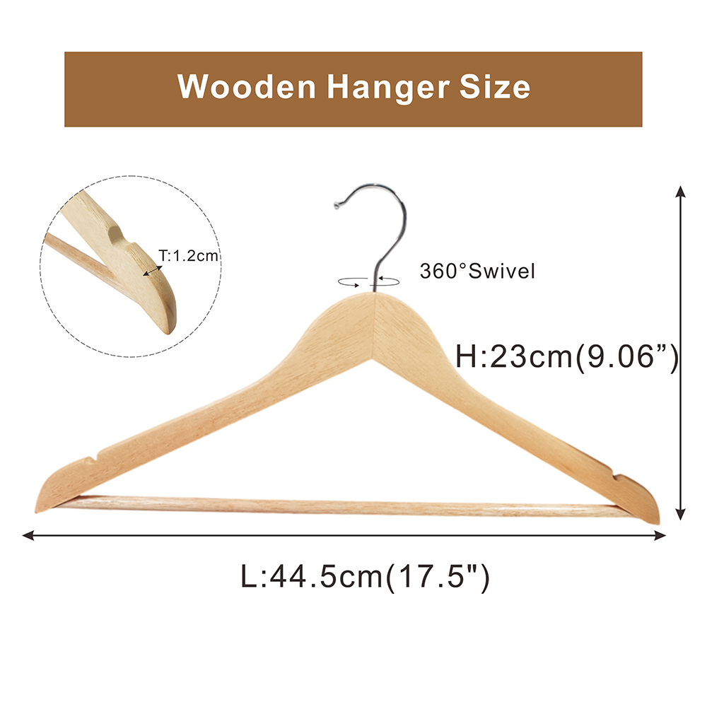 360 Swivel Hook:Each wooden hanger has a 360 degree rotatable metal hook that can work around your closet efficiently thus maximizing space.