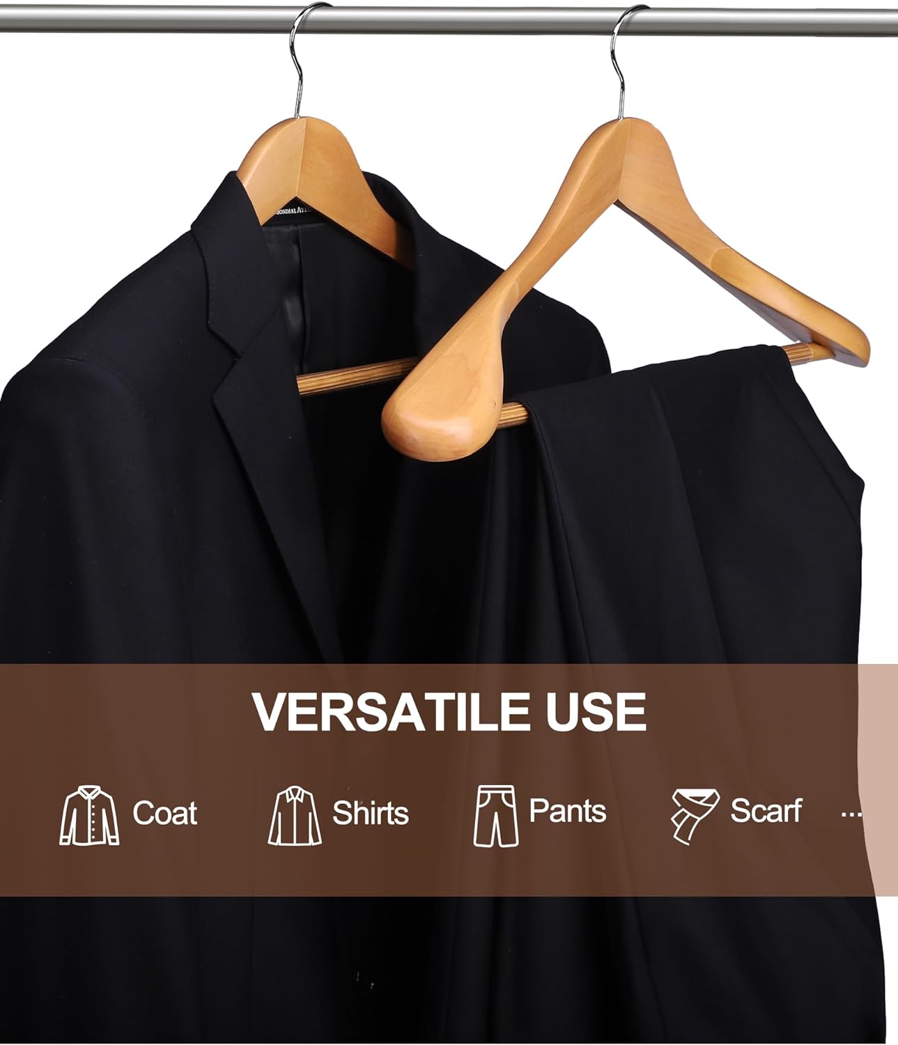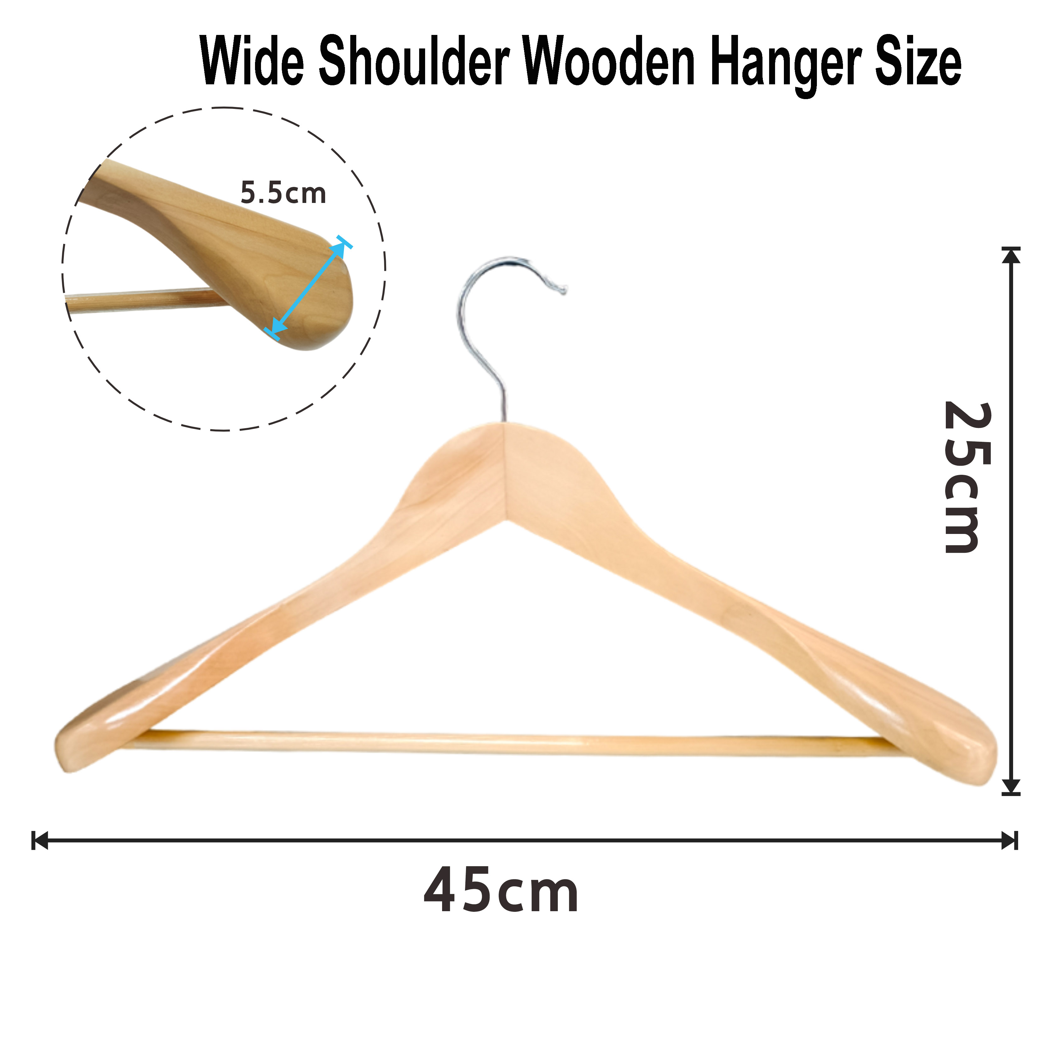 Extra Wide Shoulder Design : the wide shoulder design of the coat hangers provides ample support to your suits, coats and other kinds of clothes