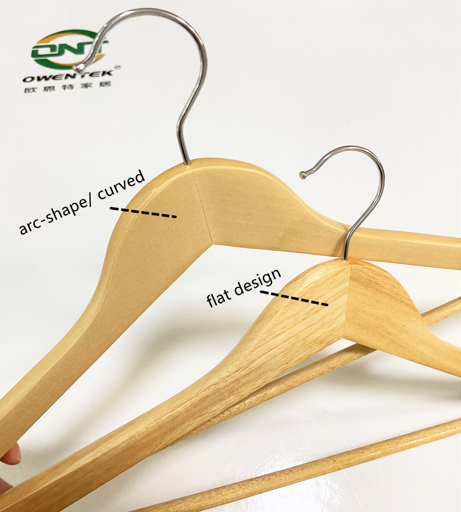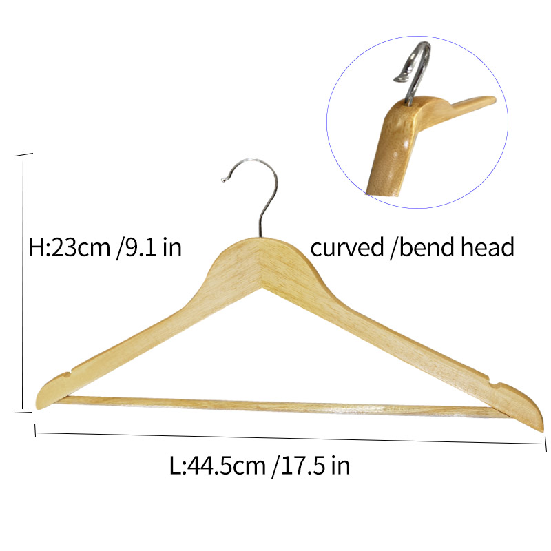 Curved Head Durable Wooden Suit Clothes Hangers Natural Wood Color