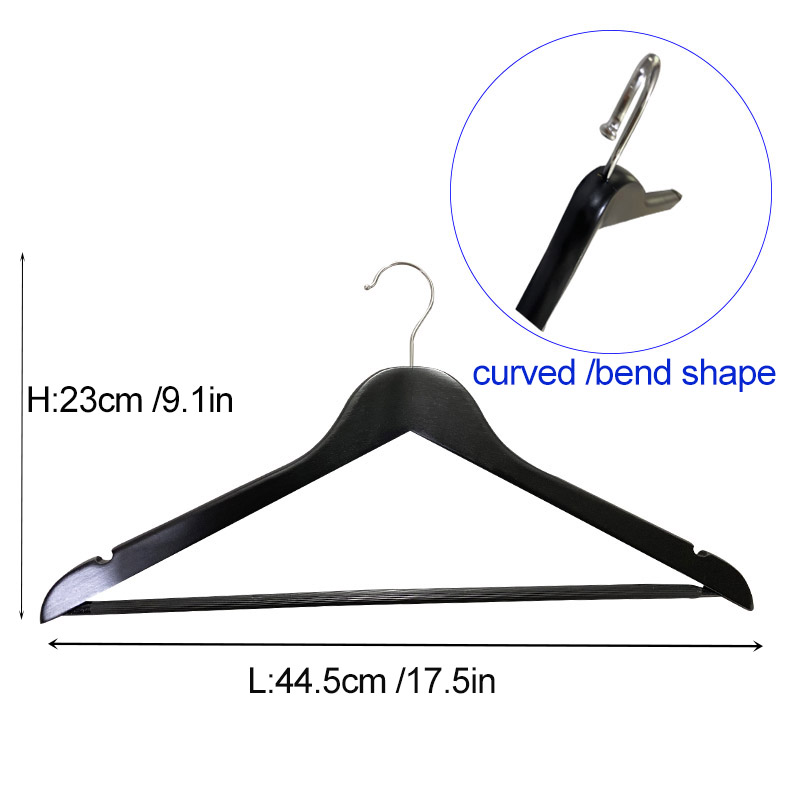 Polished Smooth Surface : With double hand-sanding craft without burr, the surface of wooden clothes hangers with black color ,becomes smooth and protect your clothes from snaggin