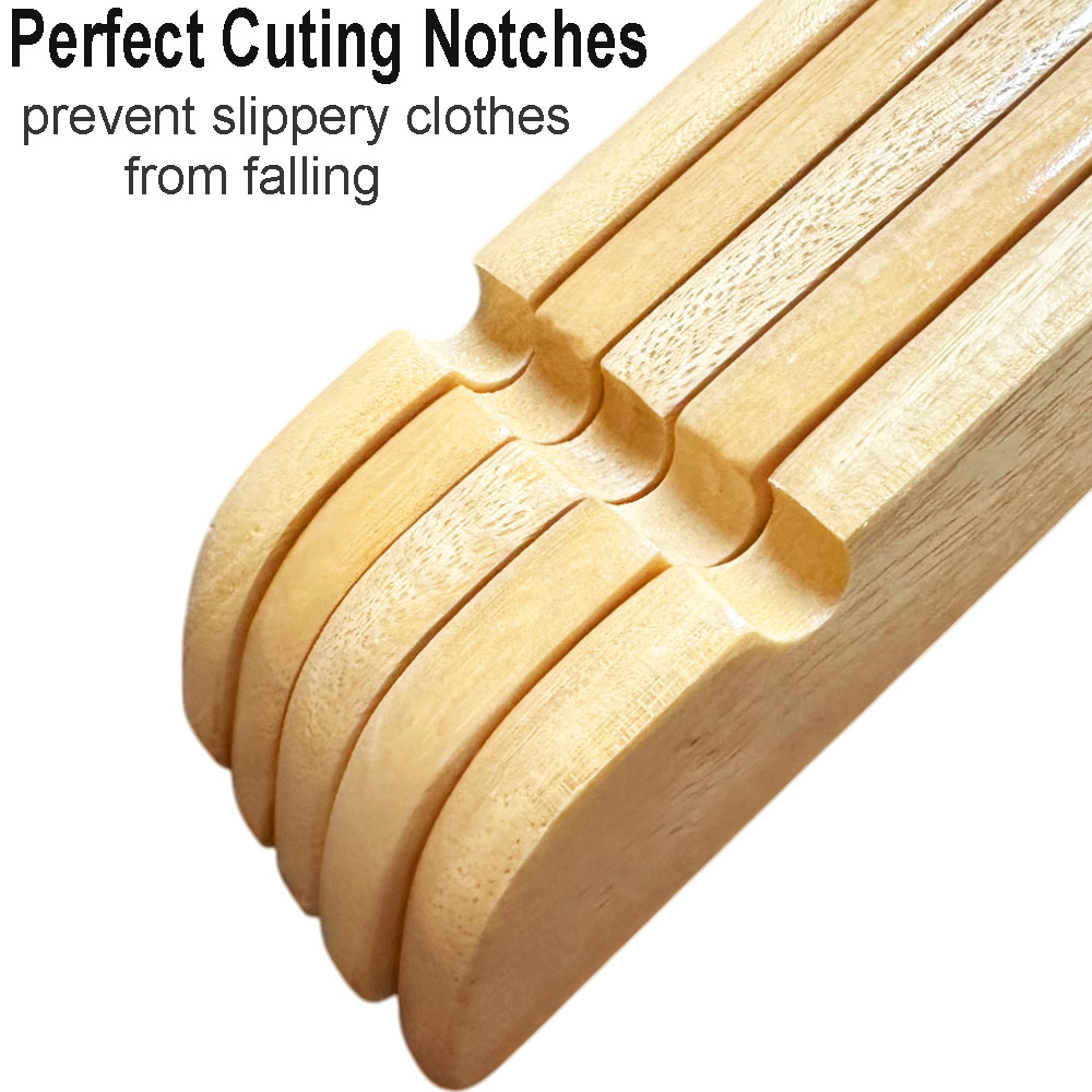 Perfect Notches shoulder : Notches on both side shoulders of wooden coat hangers can be used to hang your tank tops, dresses, bras etc.