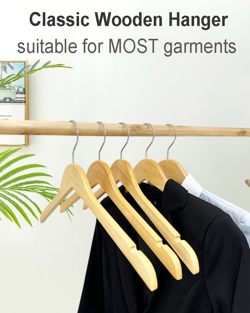 Polished Smooth Surface : With double hand-sanding craft without burr, the surface of wooden clothes hangers becomes smooth and protect your clothes from snaggin