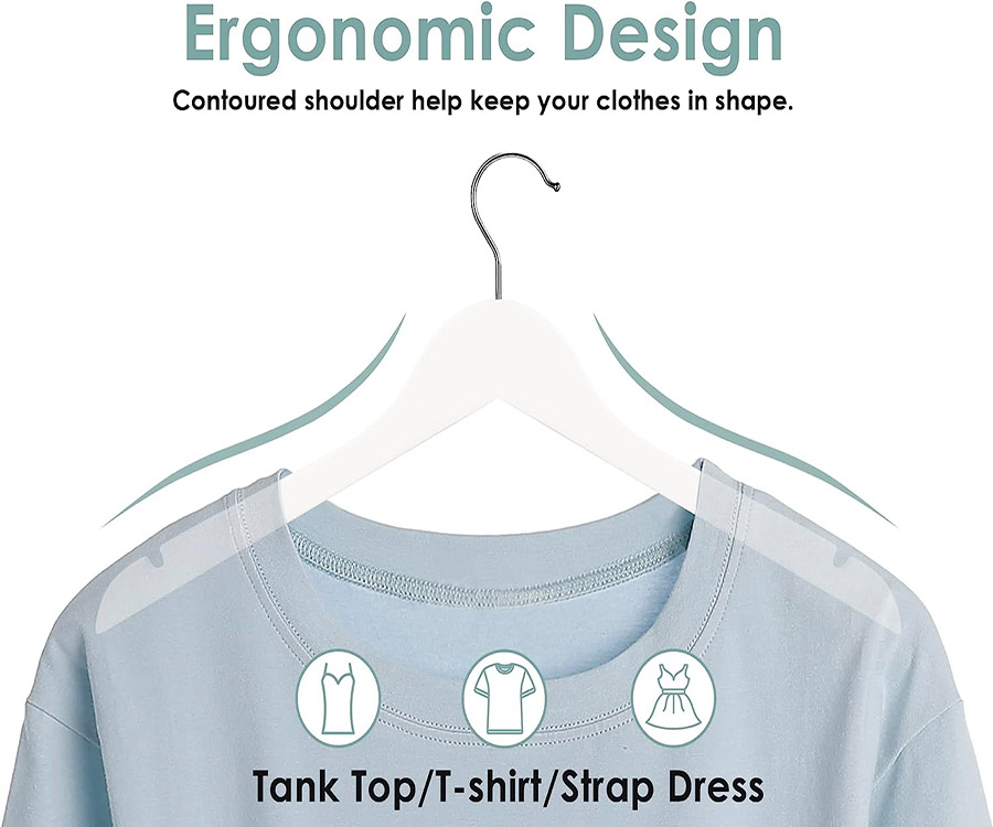 Perfect Notches shoulder : Notches on both side shoulders of wooden coat hangers can be used to hang your tank tops, dresses, bras etc.