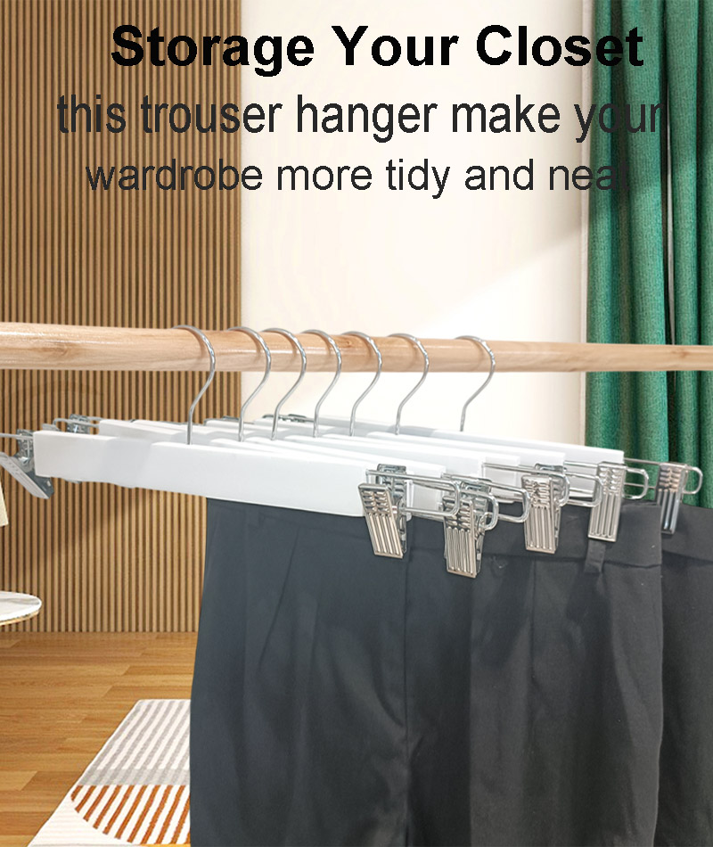 Adjustable clips : 2 pant clips grip clothes with strength, top with small grooves for easy opening and closing; clip has protective padding from unsightly marks and move freely.
