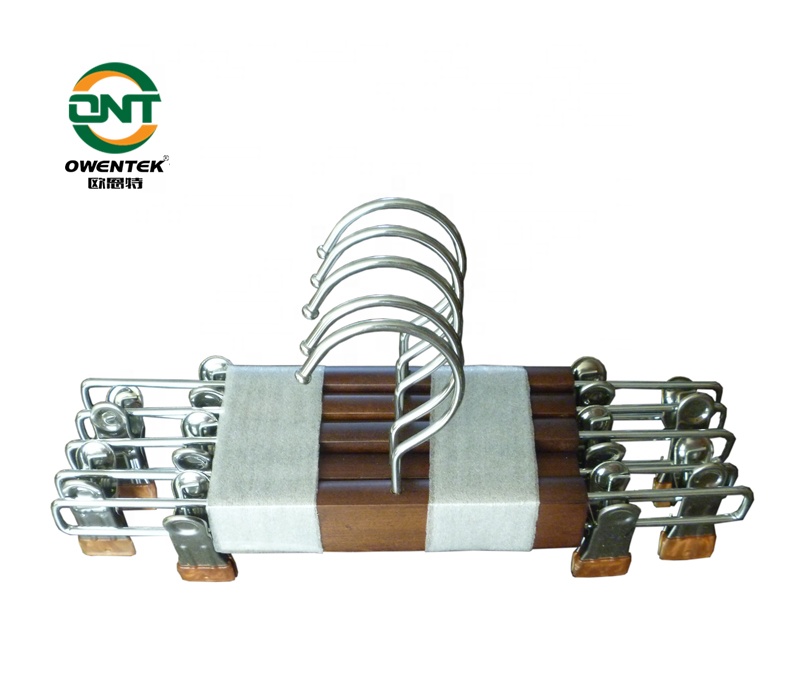 Natural Wood :Crafted of smooth lacquered wood and chromed metal, these trousers hangers are strong, robust and will last for years to come.