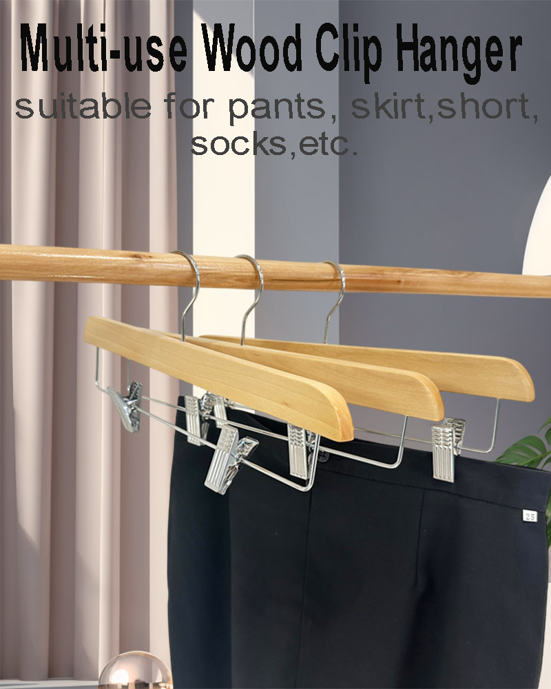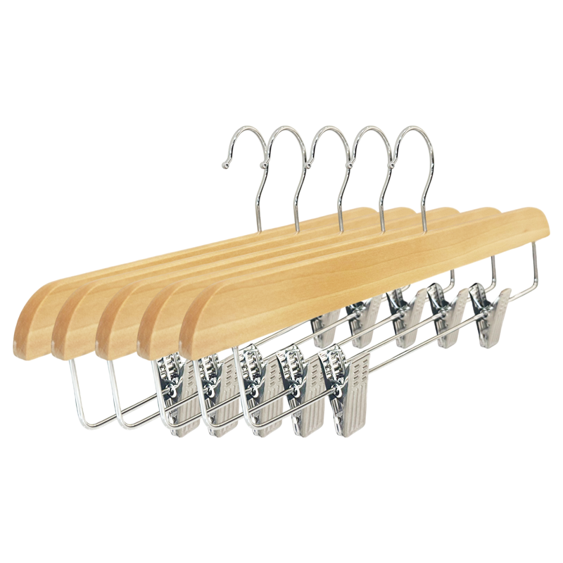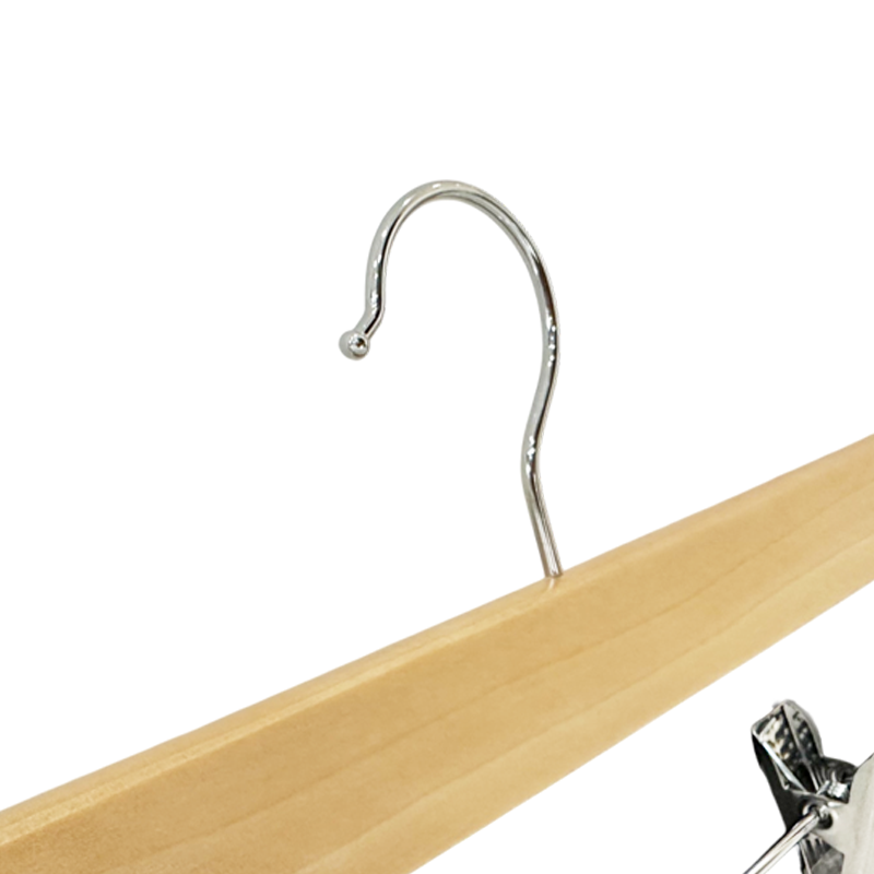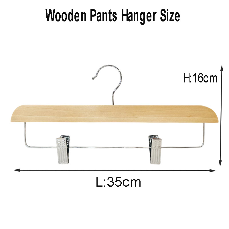Natural Wood :Crafted of smooth lacquered wood and chromed metal, these trousers hangers are strong, robust and will last for years to come.