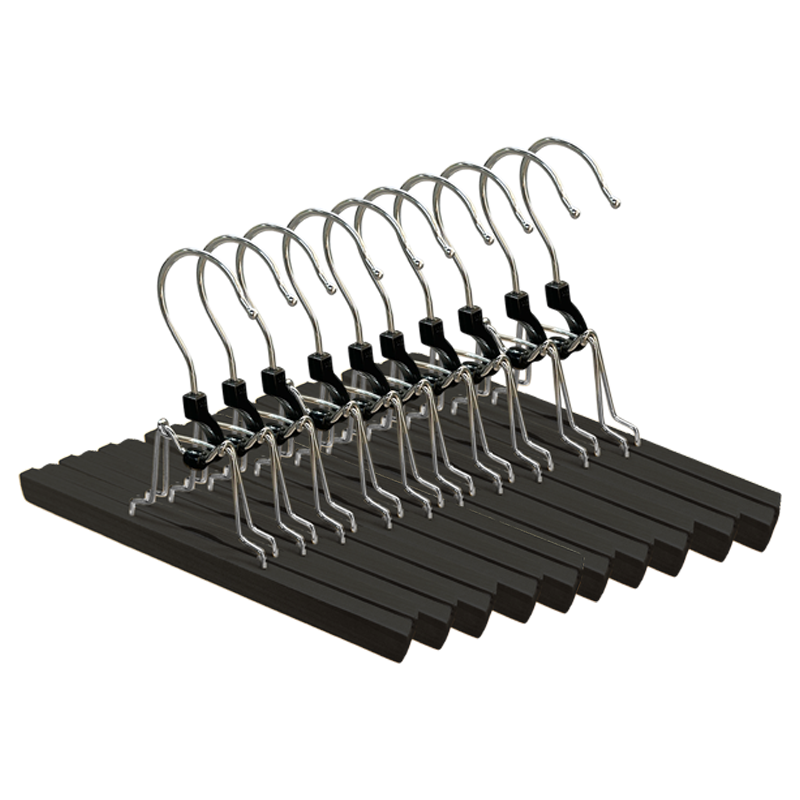 Natural Wood :Crafted of smooth lacquered wood and chromed metal, these trousers hangers are strong, robust and will last for years to come.