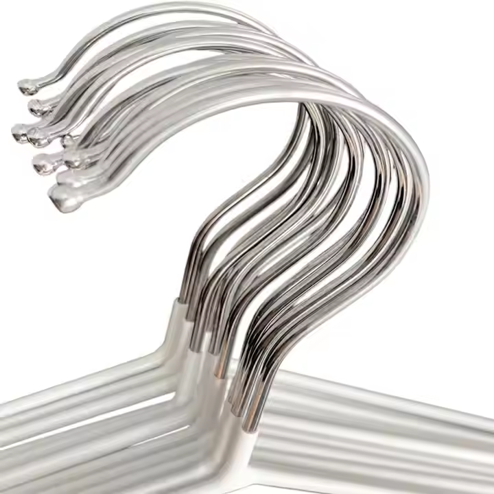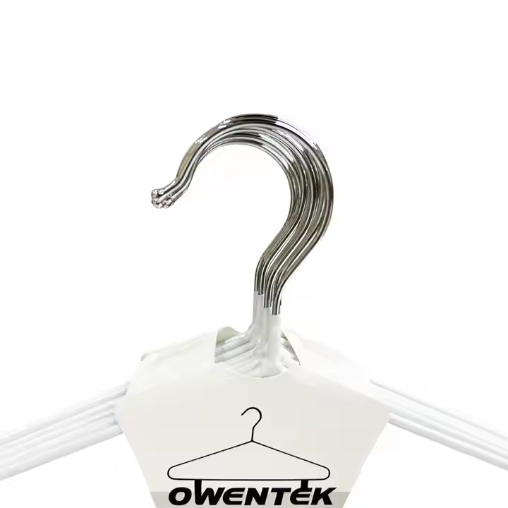 This is a pack of 10 metal hangers. The main body of the hanger is white, and the hook is silver - colored. They are sturdy and durable. The ergonomic design helps maintain the shape of clothes better. With a smooth surface, they prevent clothes from getting scratched. These hangers are suitable for hanging various garments in homes, clothing stores, and other places. Also, custom cardboards are available, allowing you to add brand logos, product information, and other content.