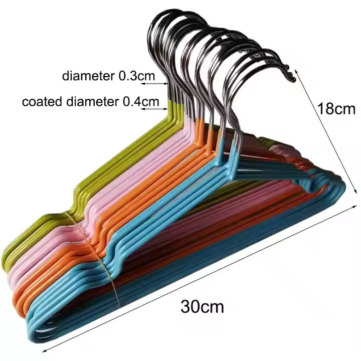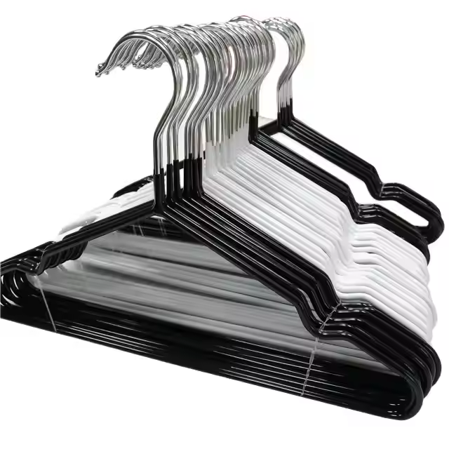 Here are metal dip-coated hangers and iron hangers. Their dip-coated surfaces are sleek, which can keep clothes from being caught, and they have anti-rust features too.