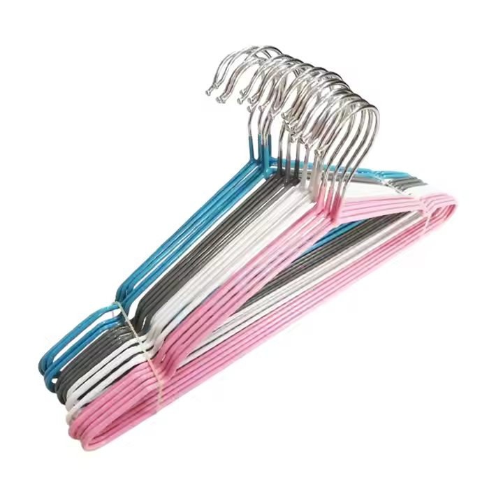 These are metal dip-coated hangers and iron hangers. The dip-coated surface is smooth, which helps prevent clothes from getting snagged, and it also has rust-resistant properties.