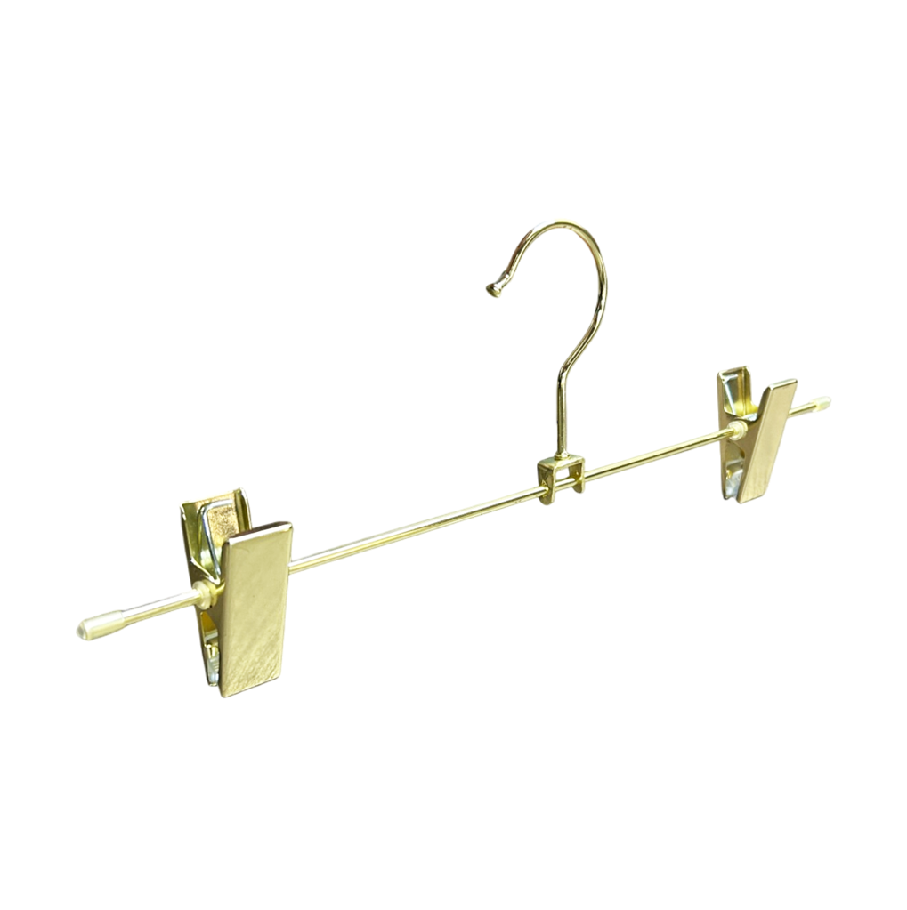 Fashionable & Sturdy: Shiny golden color fashionable design, decorate your closet and make a uniform look. Sturdy stainless steel strong construction with swivel hook. Strong enough to weigh heavier pants, skirts, slacks and trousers.