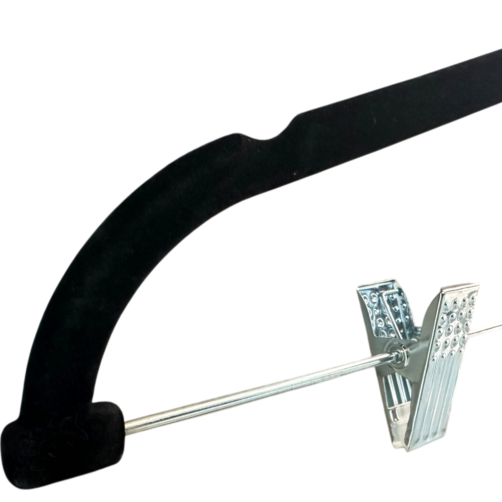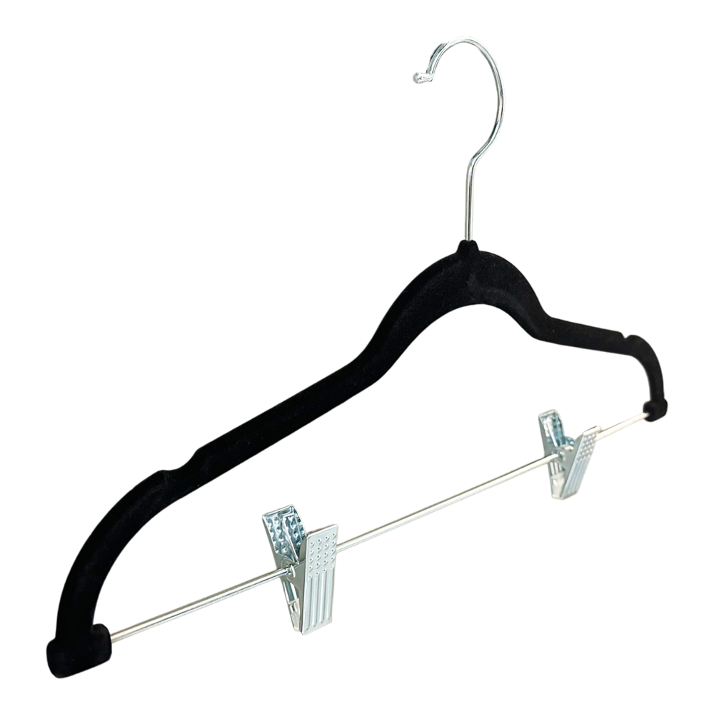 Durable Velvet Clips Hanger: Made from eco-friendly durable Plastic+Stainless that will last for years.The stainless bar and corners are reinforced so that it's stronger that other velvet hanger. It can hold up the heavy coats and jeans also most of your clothes.The pant clips and bar are finished in shiny chrome and resists corrosion. It is stronger as wooden suit hangers but it's more thin than wood hanger.