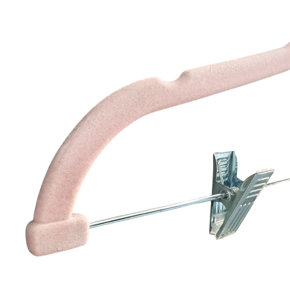 Durable Velvet Clips Hanger: Made from eco-friendly durable Plastic+Stainless that will last for years.The stainless bar and corners are reinforced so that it's stronger that other velvet hanger. It can hold up the heavy coats and jeans also most of your clothes.The pant clips and bar are finished in shiny chrome and resists corrosion. It is stronger as wooden suit hangers but it's more thin than wood hanger.